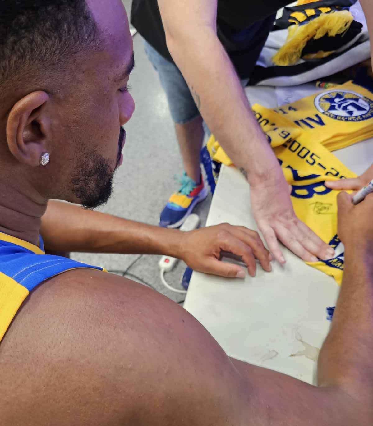 SKU: 22869 Category: 2023-24 Collection Tags: CUBZH, FSUR, GAME WORN, MGH;, MVUC, MVUCV, SCARF, XUREHI, YELLOW, בונזי, יורוליג, כדור, מקורי, מקורית, צהוב, צהובה, צעיף