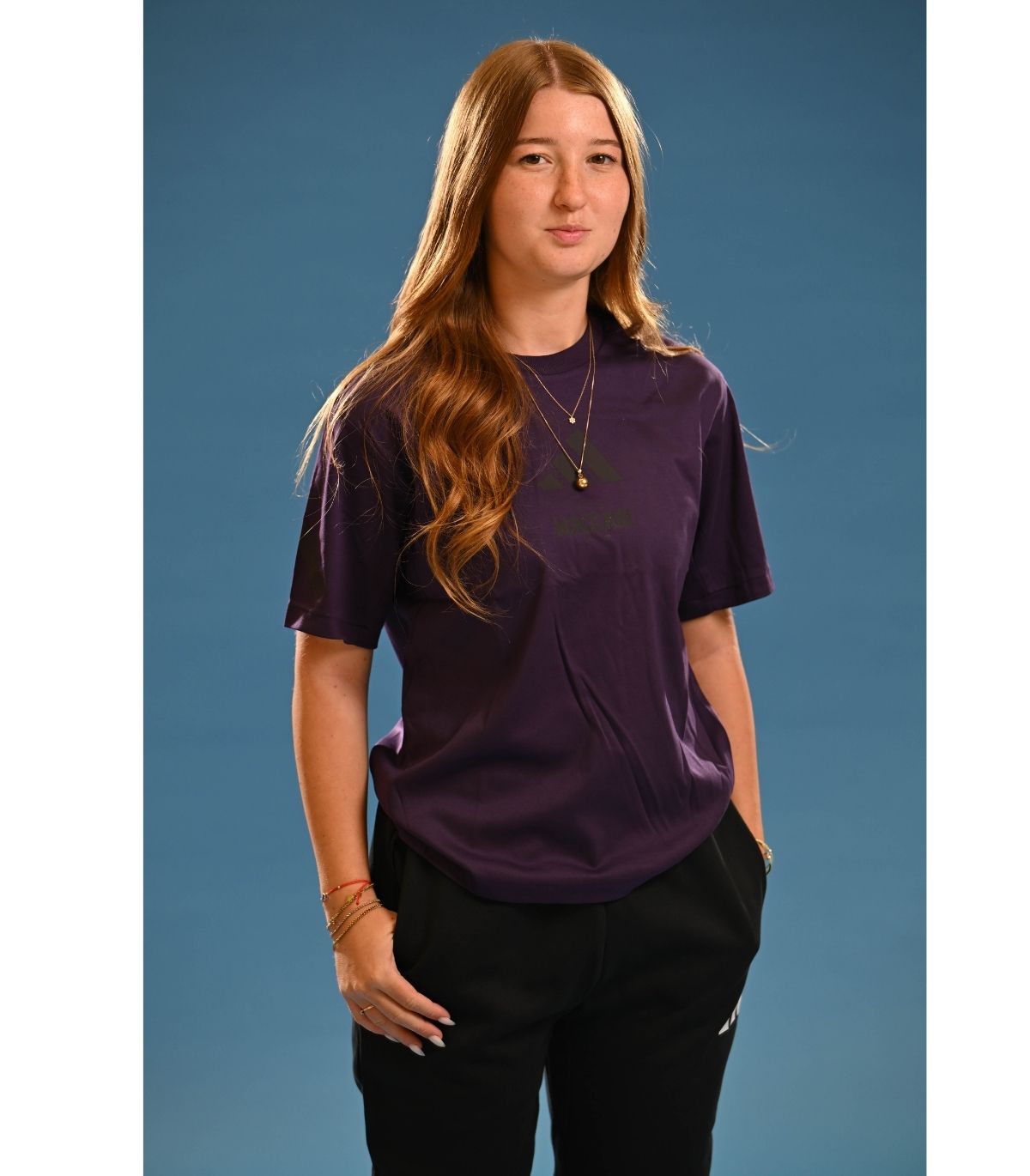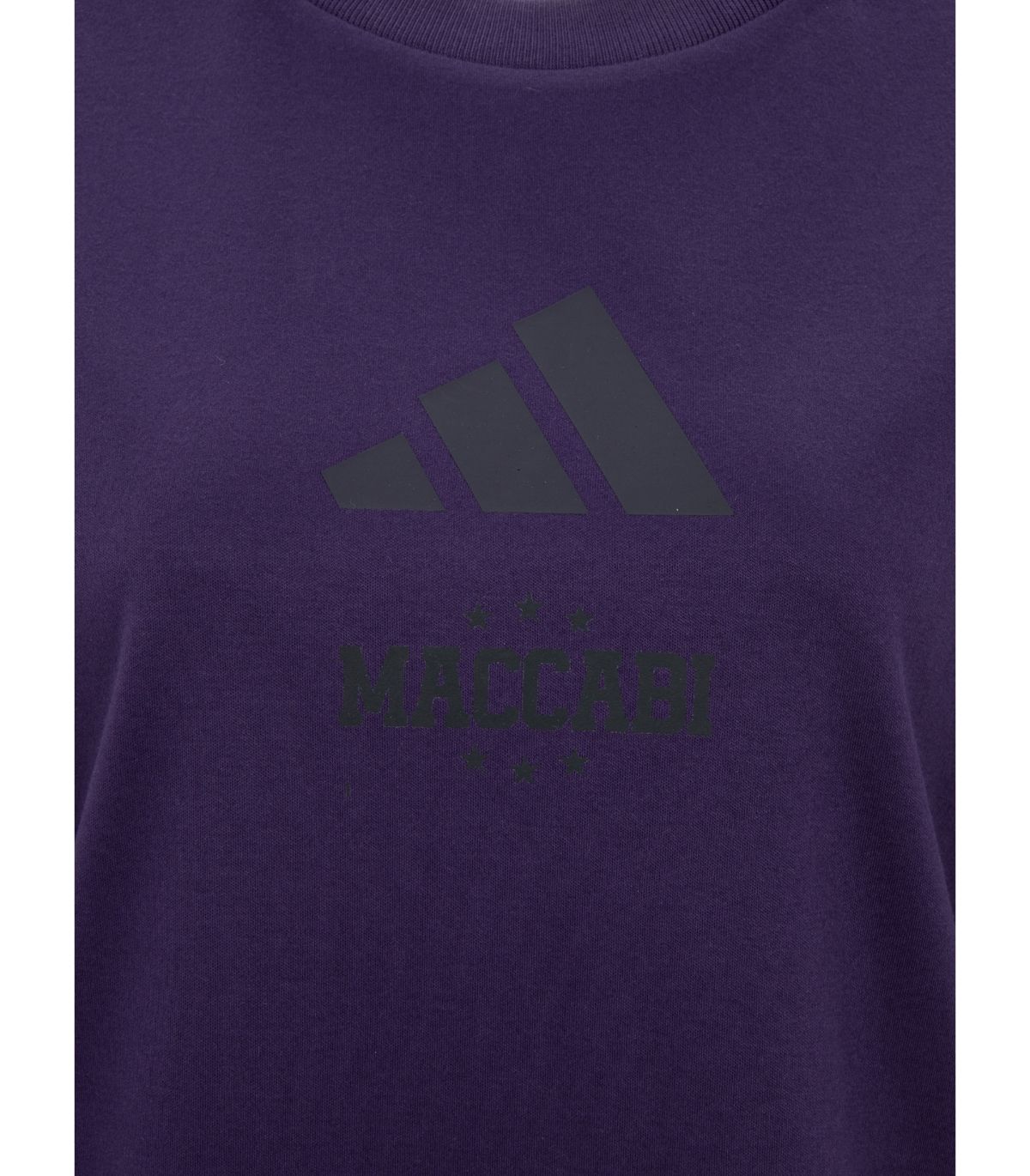 חולצת טישרט קצרה ADIDAS Z.N.E גזרת נשים בצבע סגול עם הכיתוב 'MACCABI' בעיצוב כוכבים.