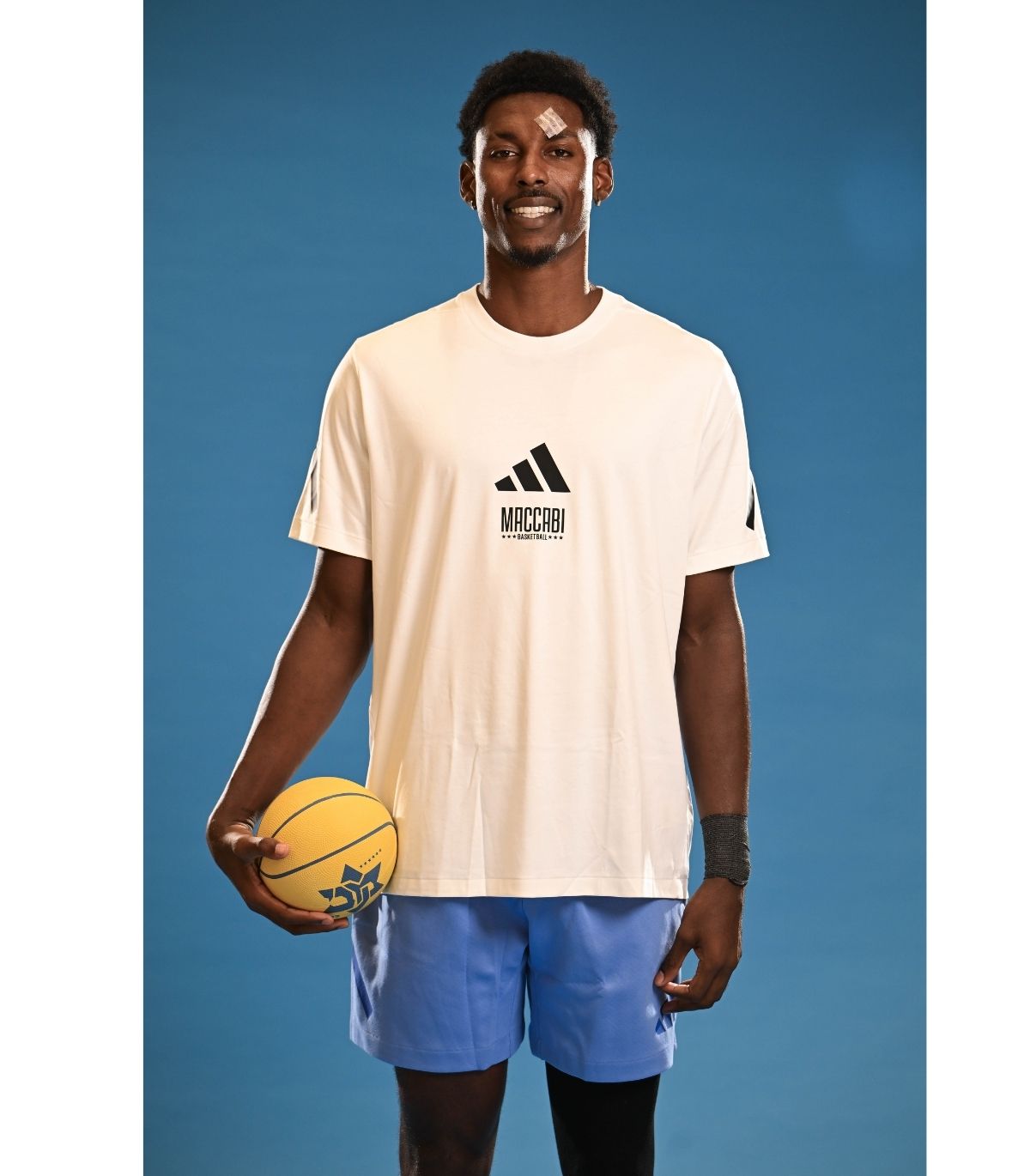 חולצת טישרט קצרה ADIDAS Z.N.E לבוגרים בצבע לבן עם הכיתוב 'MACCABI BASKETBALL'
