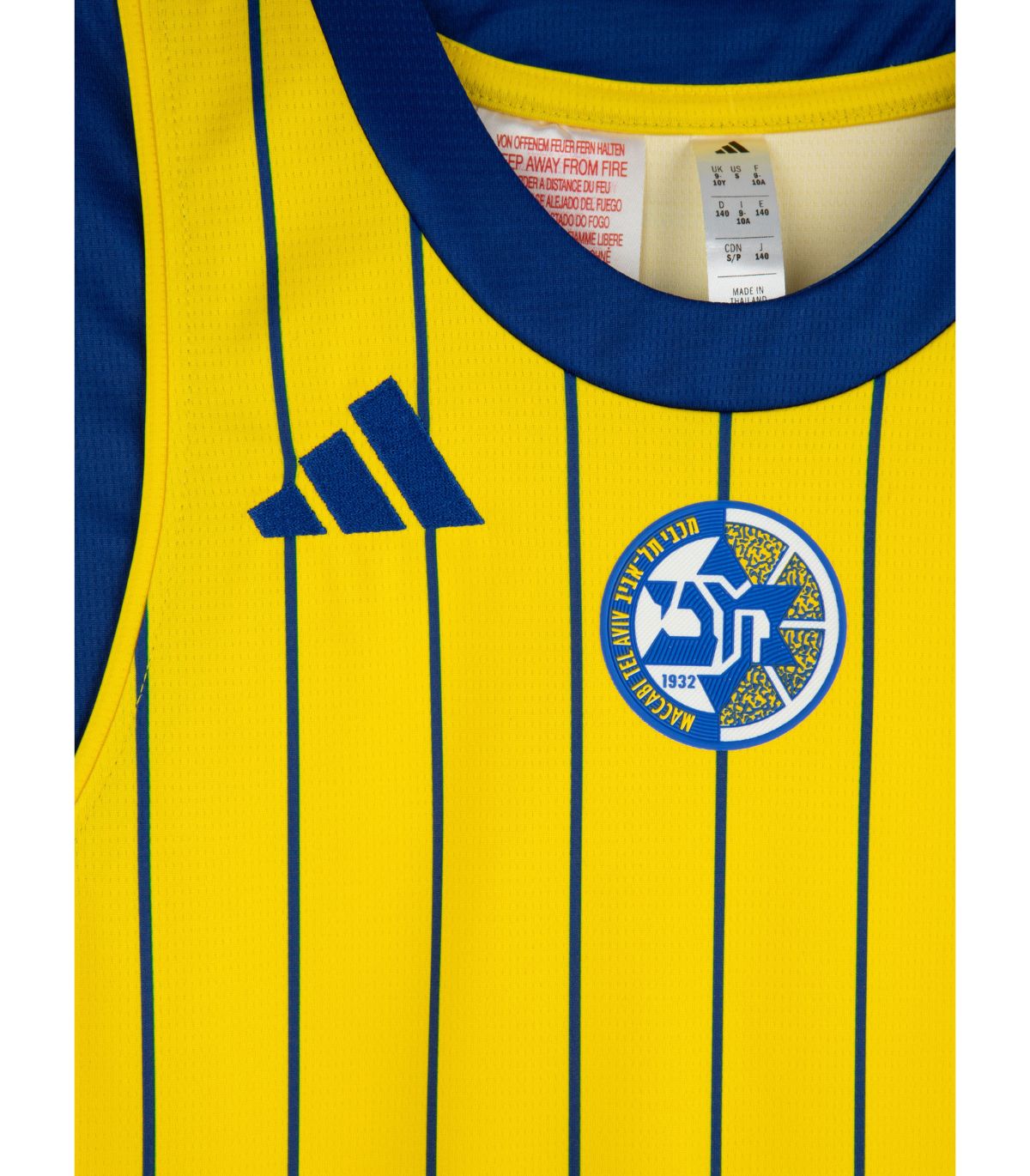 אותנטיות מובטחת: זו הגופייה הרשמית בה משחקים שחקני מכבי ת"א, במידות מיוחדות לילדים. לוגו אדידס וסמל המועדון רקומים/מודפסים באיכות הגבוהה ביותר.