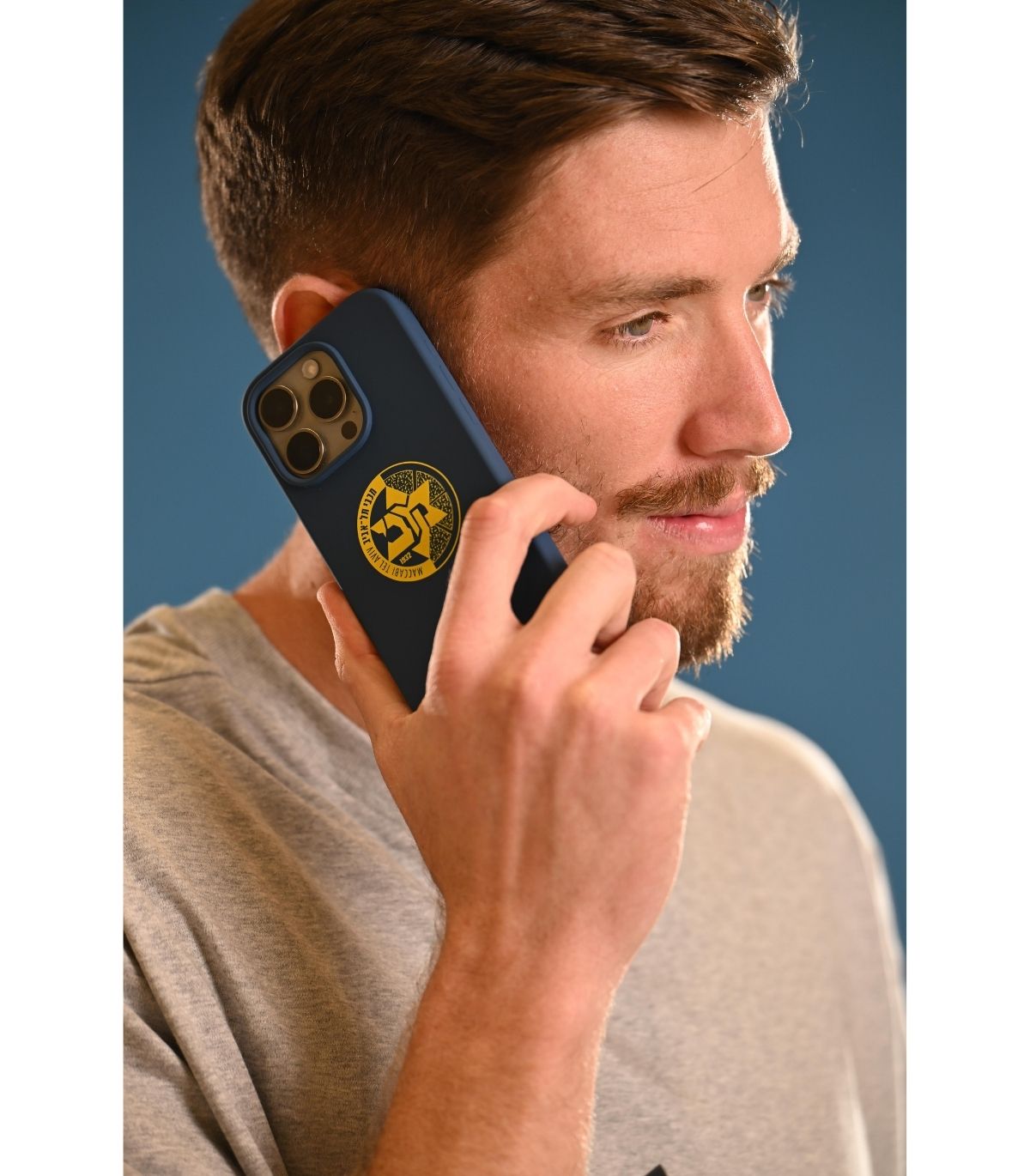 כיסוי סיליקון לטלפון בצבע כחול, עם מיתוג של סמל הקבוצה.