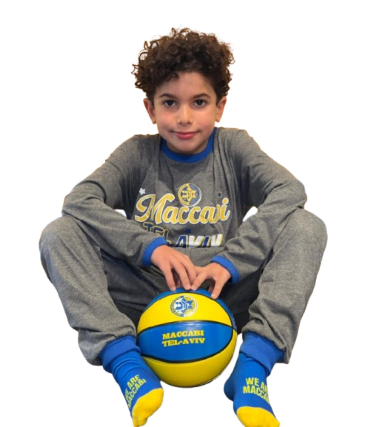 סט פיג'מה ארוך בצבע אפור לילדים של מכבי RAPYD תל אביב.
