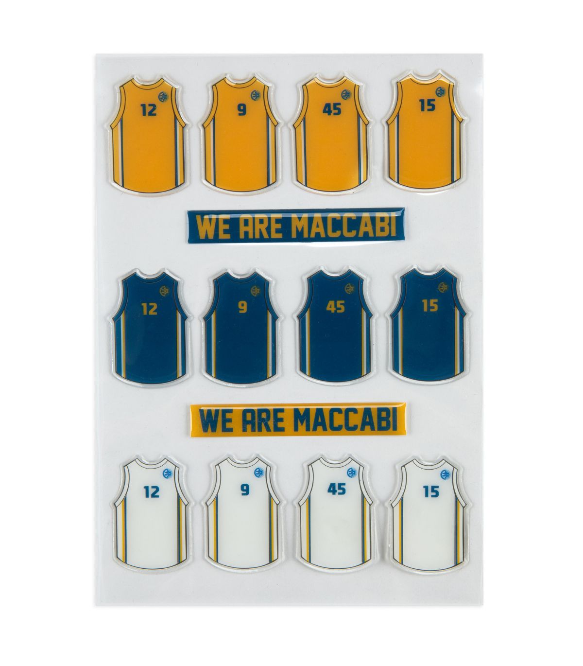 חבילת מדבקות מיוחדת של מועדון הכדורסל מכבי תל אביב.