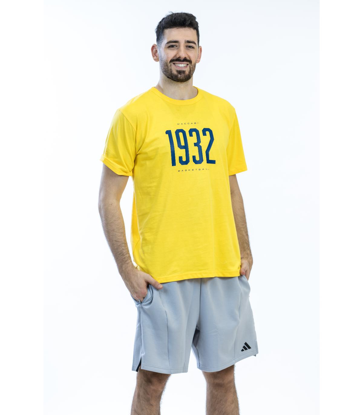 טי שירט מכבי תל אביב '1932' לבוגרים בצבע צהוב מקולקציית ביגוד MCB.