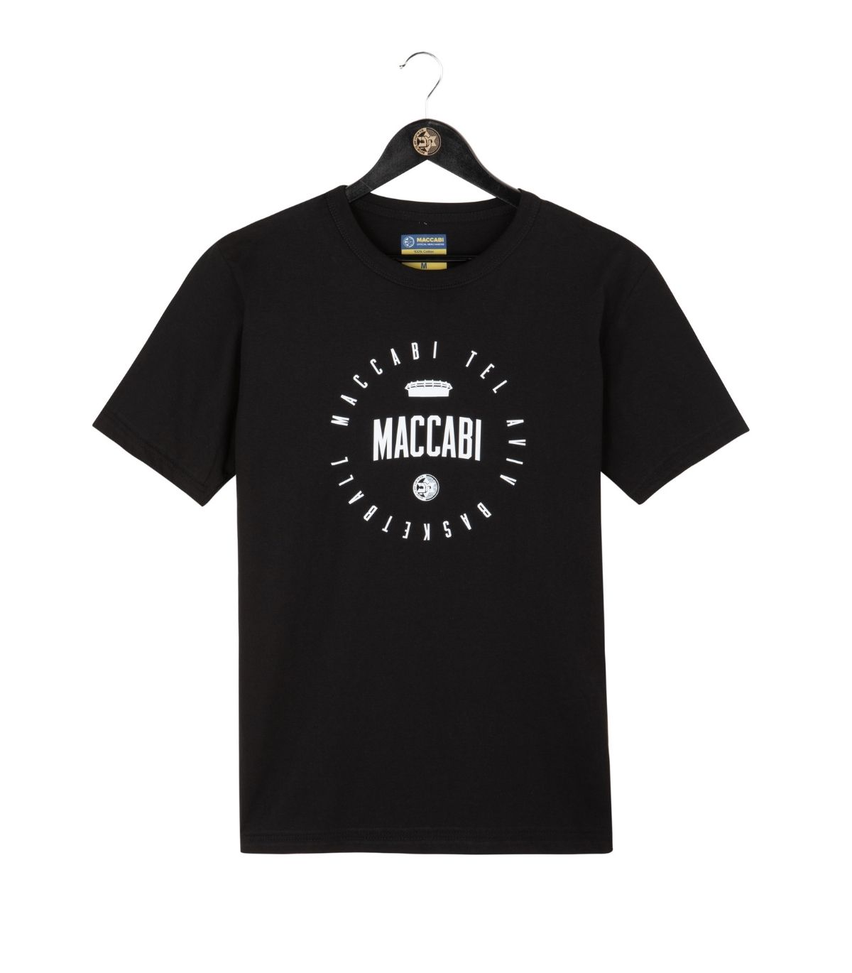 טי שירט מכבי תל אביב 'היכל MACCABI' לבוגרים בצבע שחור מקולקציית ביגוד MCB.