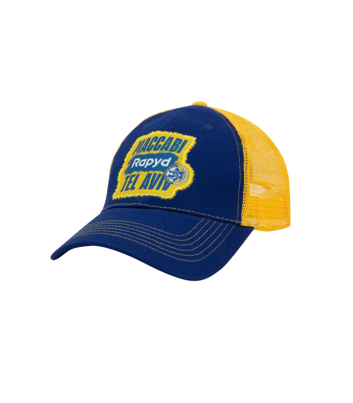 כובע רשת בצבע צהוב בעיצוב מכבי RAPYD תל אביב בצבע כחול