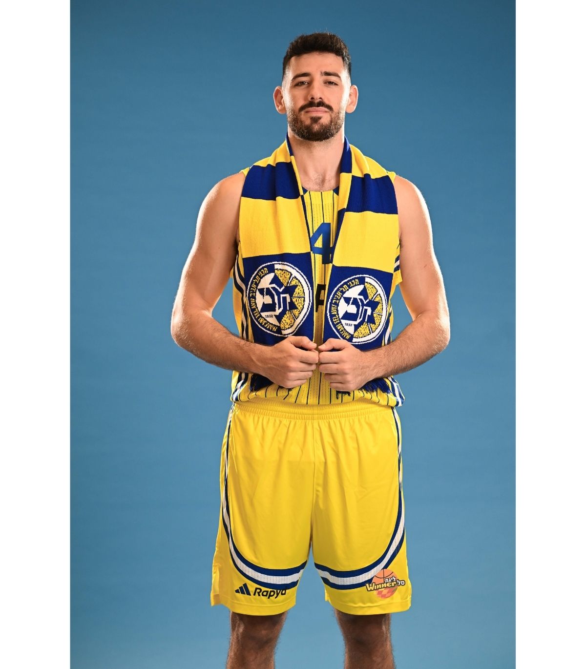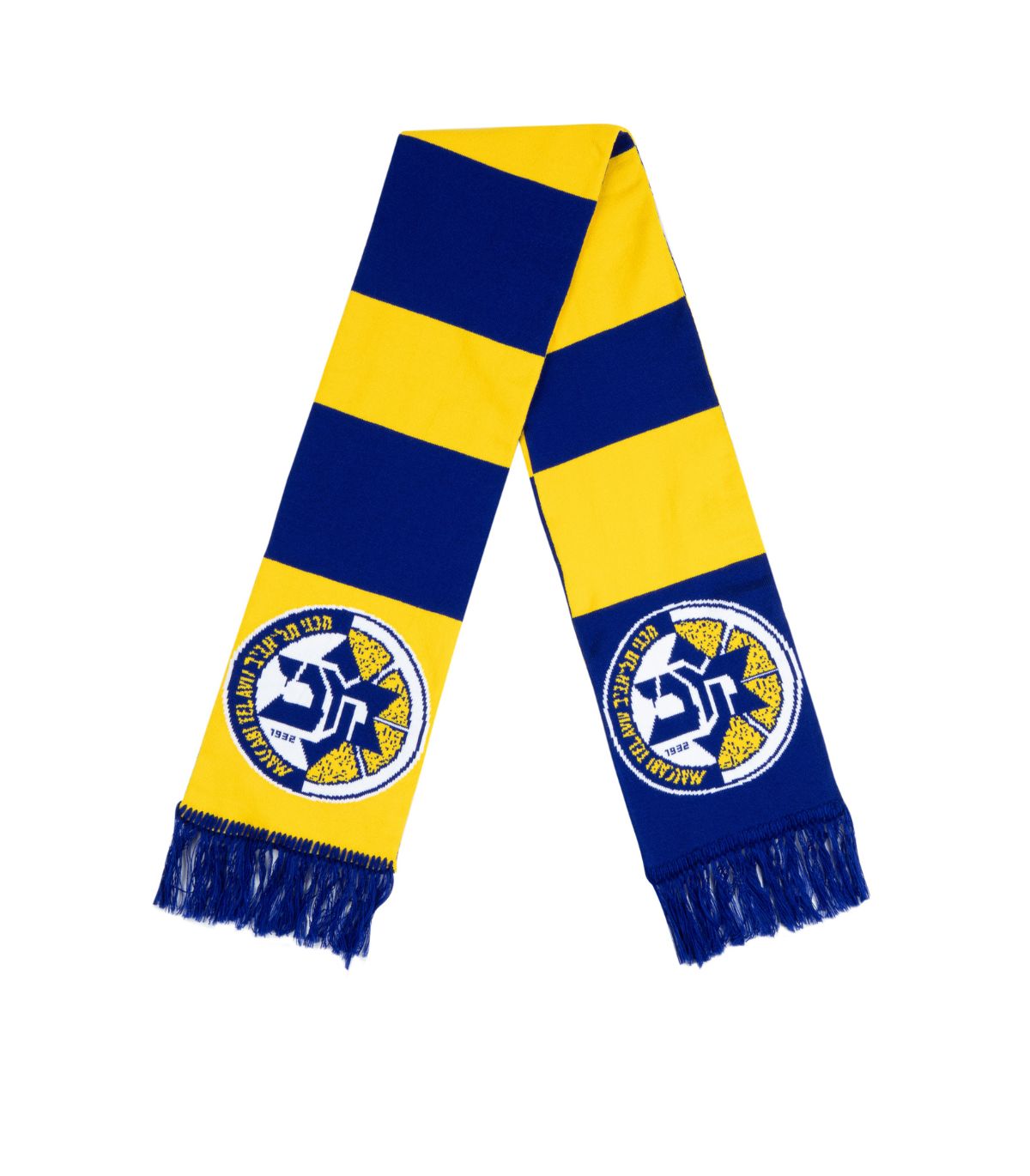 צעיף צמר של מועדון הכדורסל מכבי תל אביב, דגם '‘פסים'’ לעונת 2025-26