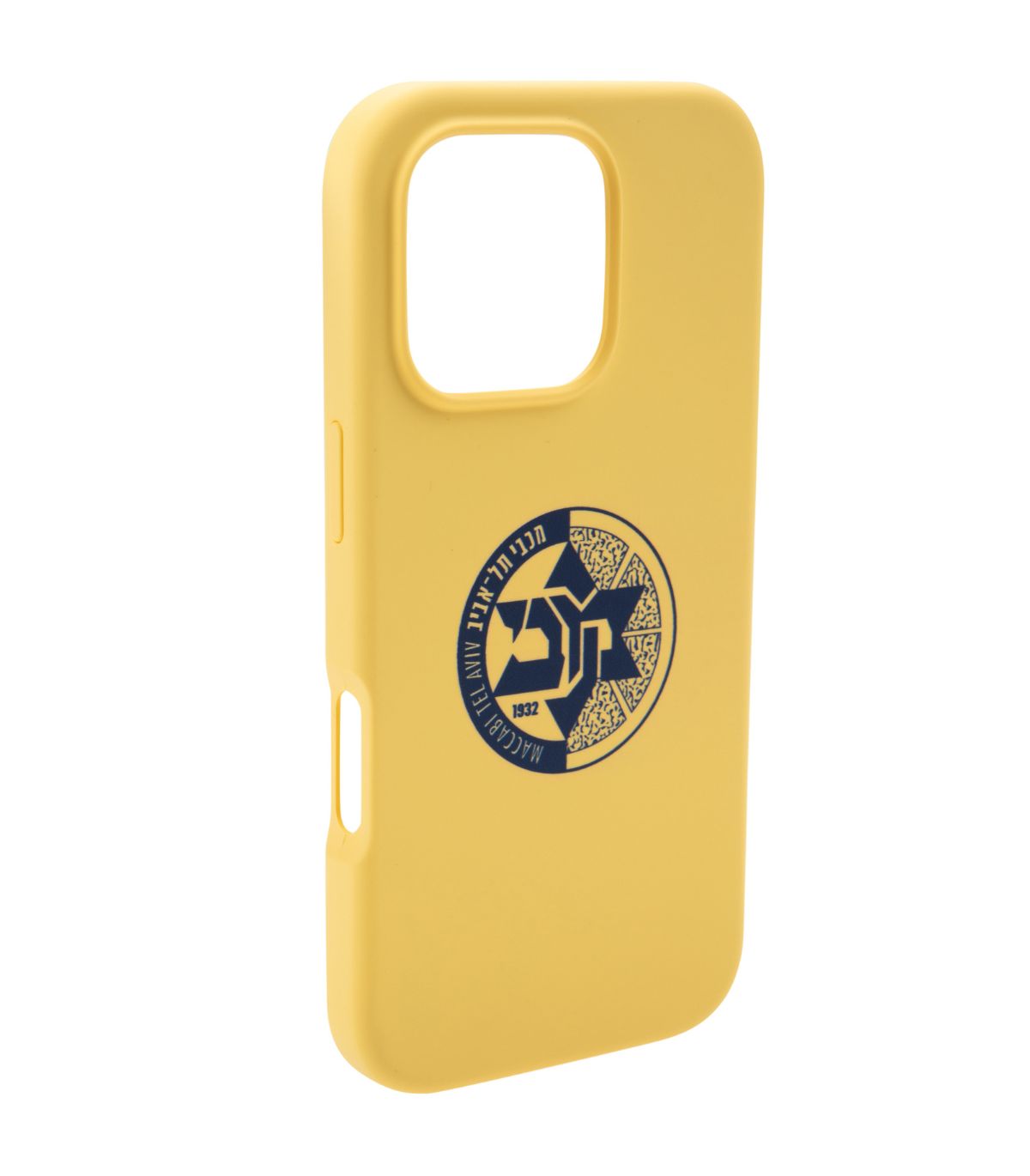 כיסוי סיליקון לטלפון בצבע צהוב, עם מיתוג של סמל הקבוצה.